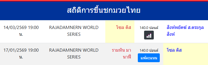 โซล ติส "โซล ติส" ประเทศ 🇹🇭 ไทย ลีก Muay Thai 0 ชนะ 0 แพ้ 0 เสมอ 0 KO/TKO ประวัติและชีวประวัติ สถิติการขึ้นชกมวยไทยโซล ติส ขึ้นชกล่าสุด17/1/2569(1 เดือน 22 วัน)