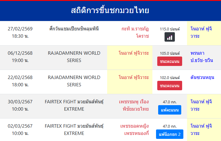 สถิติการขึ้นชกมวยไทย