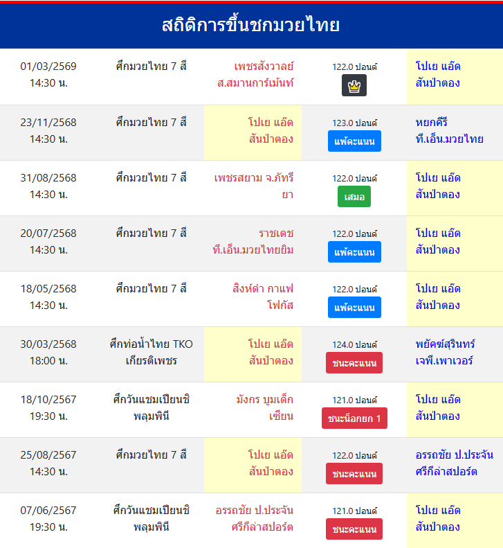 | ขึ้นชกล่าสุด | 23/11/2568 (3 เดือน 3 วัน) |