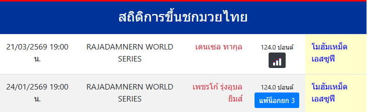 โมฮัมเหม็ด เอสซูฟี "โมฮัมเหม็ด เอสซูฟี" ประเทศ 🇹🇭 ไทย ลีก Muay Thai 0 ชนะ 0 แพ้ 0 เสมอ 0 KO/TKO ประวัติและชีวประวัติ สถิติการขึ้นชกมวยไทยโมฮัมเหม็ด เอสซูฟี ขึ้นชกล่าสุด24/1/2569(1 เดือน 24 วัน)