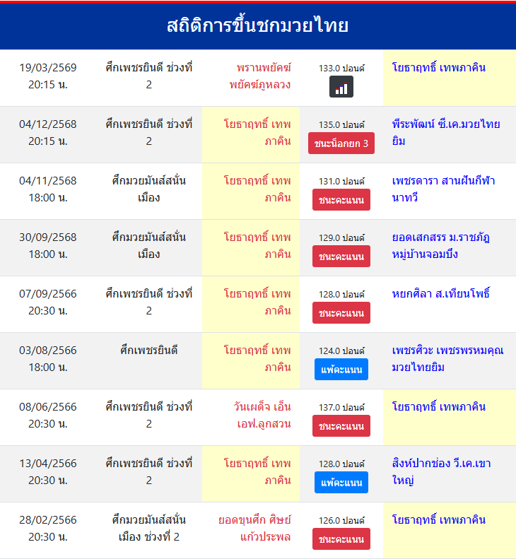 ขึ้นชกล่าสุด4/12/2568