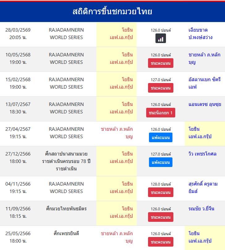 | ขึ้นชกล่าสุด | 10/5/2568 (10 เดือน 16 วัน) |