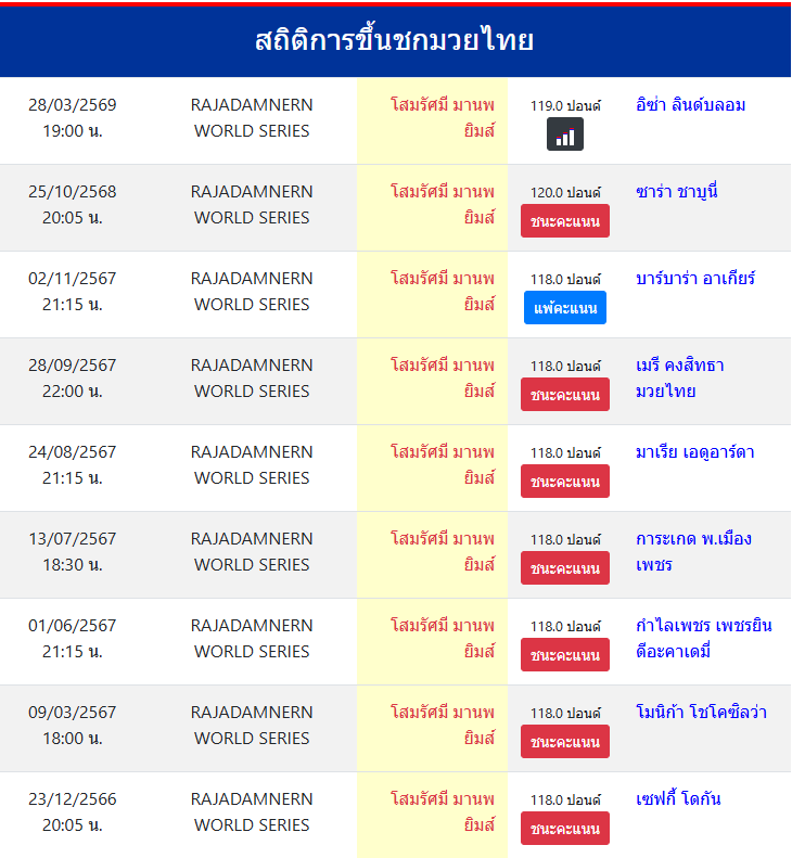 สถิติการขึ้นชกมวยไทย