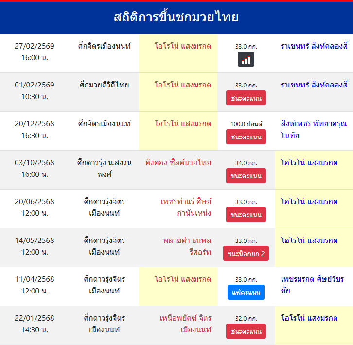สถิติการขึ้นชกมวยไทย
