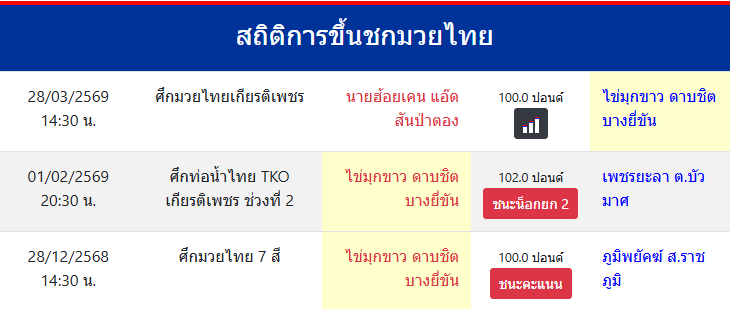 สถิติการขึ้นชกมวยไทย