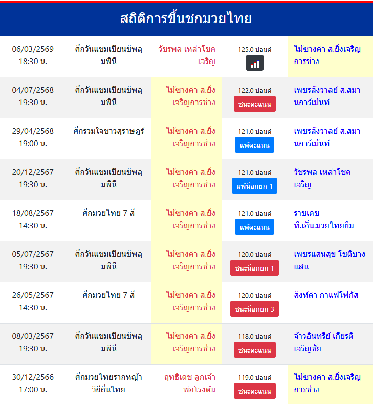 | ขึ้นชกล่าสุด | 4/7/2568 (8 เดือน 1 วัน) |