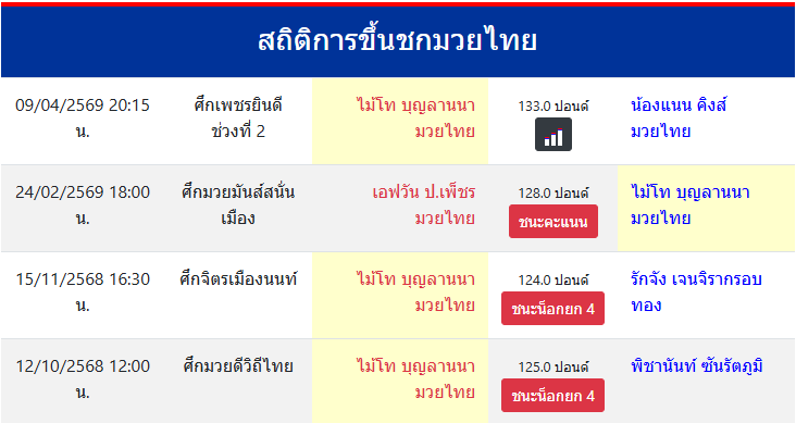สถิติการขึ้นชกมวยไทย