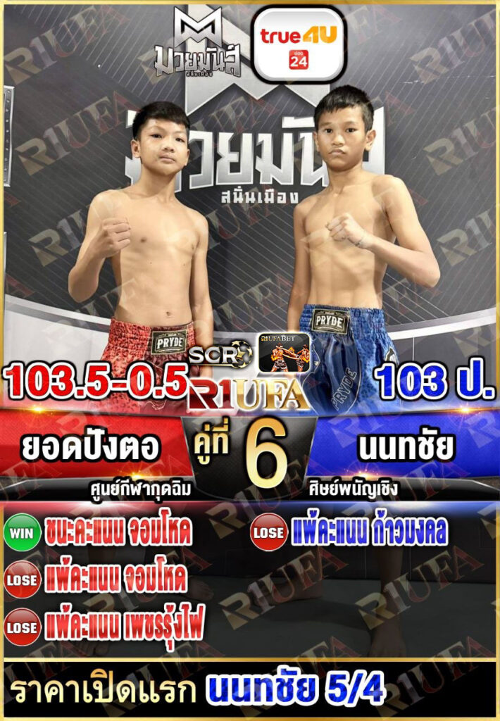 | คู่ชก | ยอดปังตอ ศูนย์กีฬากุดฉิม | นนทชัย ศิษย์พนัญเชิง |