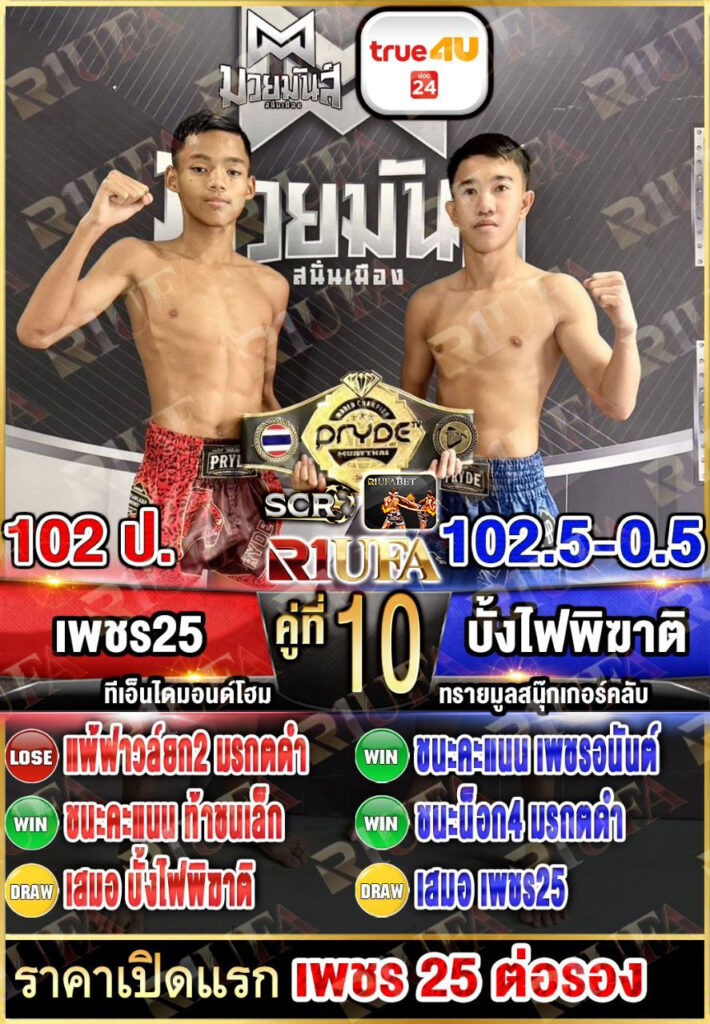 | คู่ชก | เพชร25 ทีเอ็น.ไดม่อนโฮม | บั้งไฟพิฆาต ทรายมูลสนุ๊กเกอร์ |
