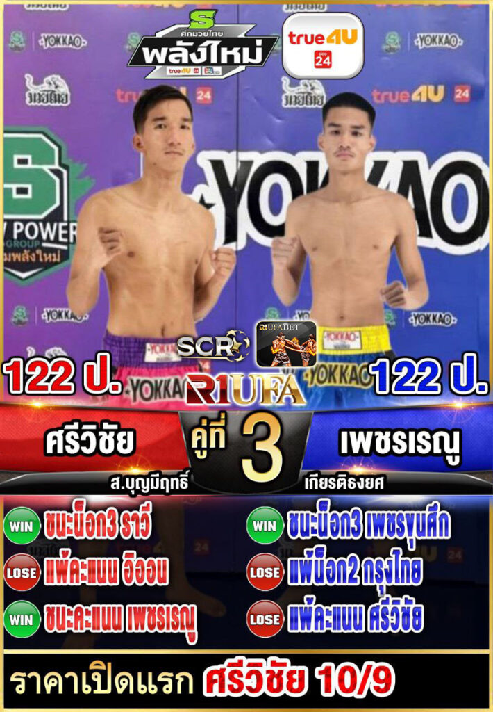 | คู่ชก | ศรีวิชัย ส.บุญมีฤทธิ์ | เพชรเรณู เกียรติธงยศ |