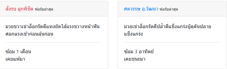 | มวย | มวยเข่า+มวยเดิน | มวยเข่า+มวยฝีมือ |