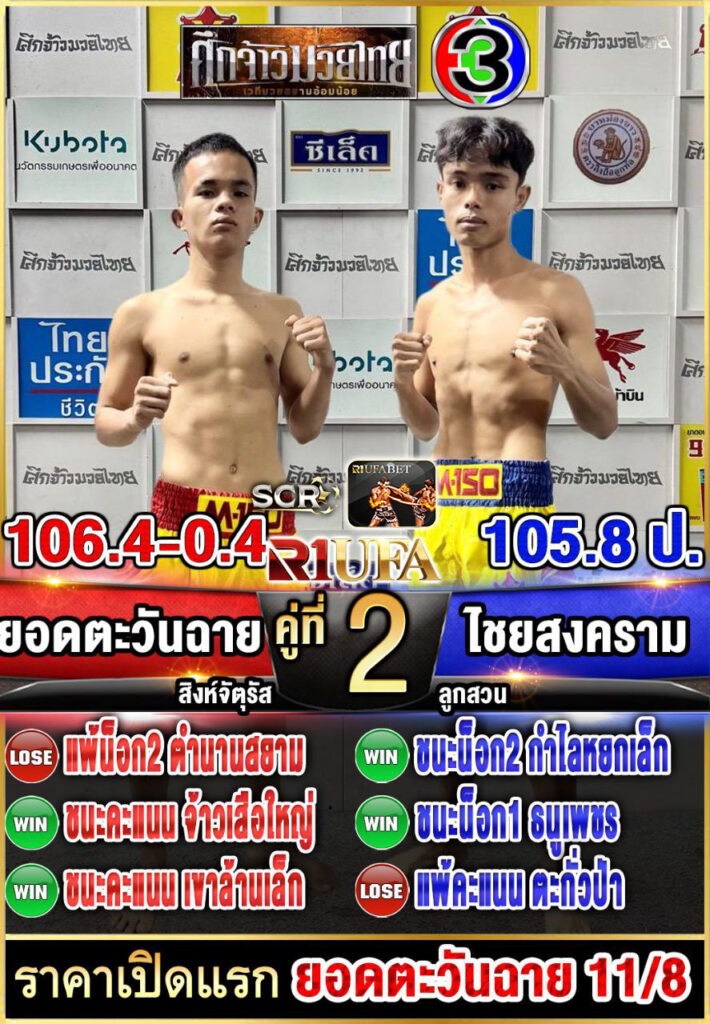 | คู่ชก | ยอดตะวันฉาย สิงห์จัตุรัส | ไชยสงคราม ลูกสวน |