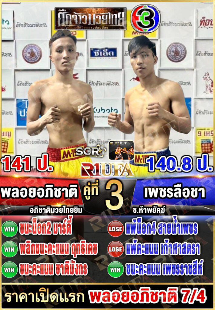 | คู่ชก | พลอยอภิชาติ อภิชาติมวยไทยยิม | เพชรลือชา ช.ห้าพยัคฆ์ |