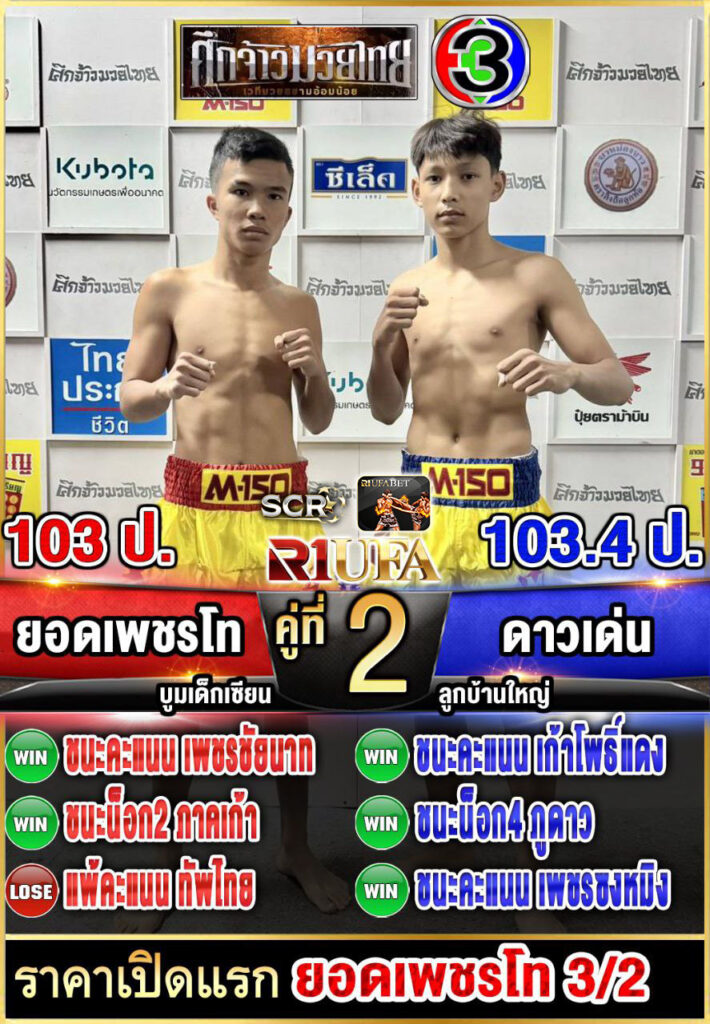 | คู่ชก | ยอดเพชรโท บูมเด็กเซียน | ดาวเด่น ลูกบ้านใหญ่ |
