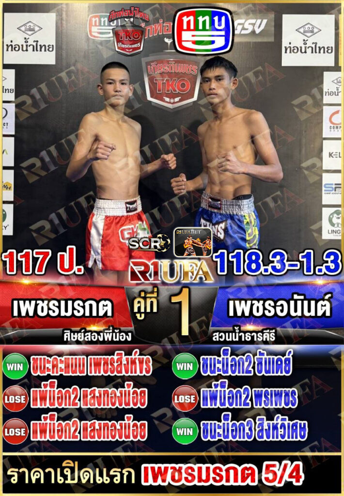 | คู่ชก | เพชรมรกต ศิษย์สองพี่น้อง | เพชรอนันต์ สวนน้ำธารคีรี |