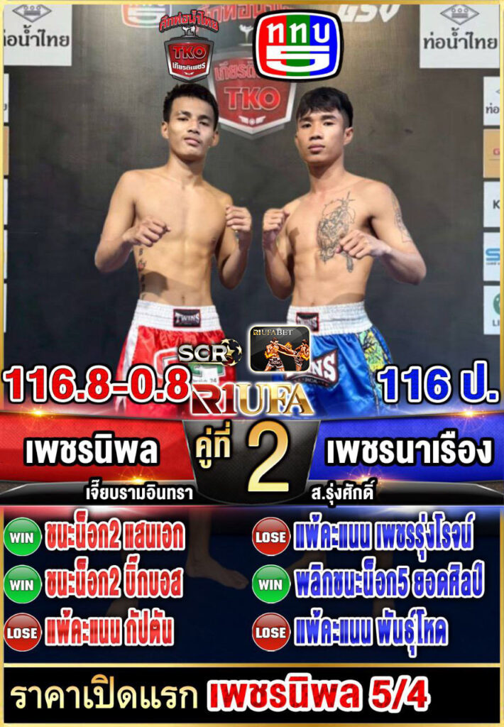 | คู่ชก | เพชรนิพล ป.มงคลอินทร์ | เพชรนาเรือง ส.รุ่งศักดิ์ |