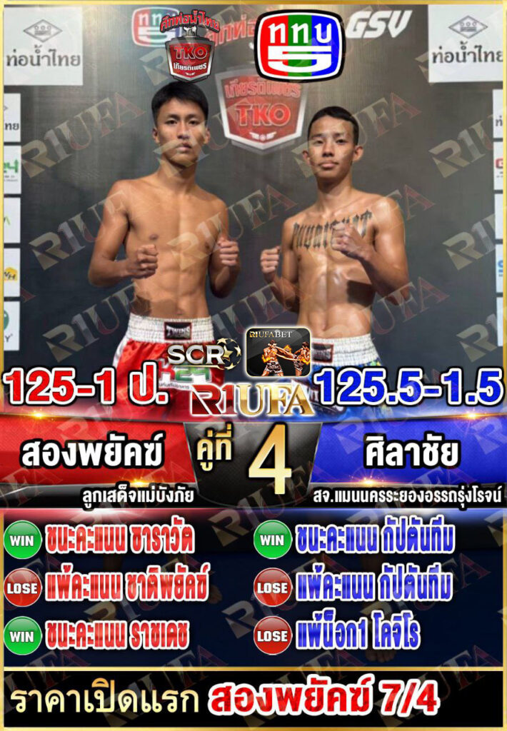 | คู่ชก | สองพยัคฆ์ ลูกเสด็จแม่บังภัย | ศิลาชัย สท.แมนนครระยองอรรถรุ่งโรจน์ |