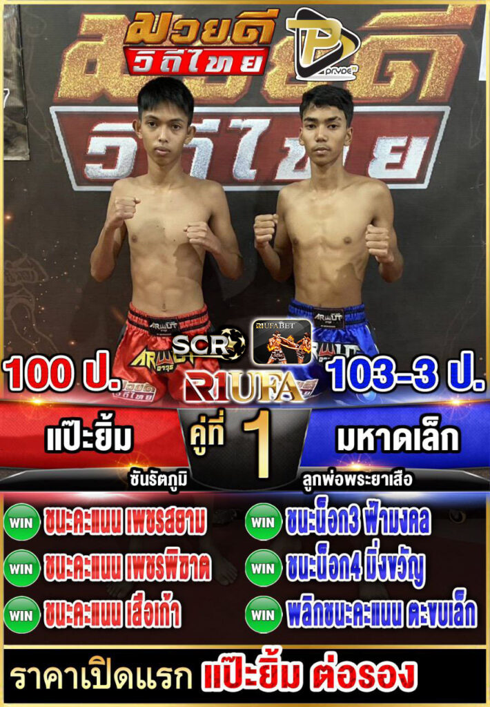 | คู่ชก | แป๊ะยิ้ม ส.ซากีฟ | มหาดเล็ก ลูกพ่อพระยาเสือ |