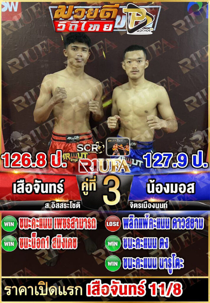 | คู่ชก | เสือจั่น ส.อิสระโชติ | น้องมอส ลูกบ้านใหม่ |