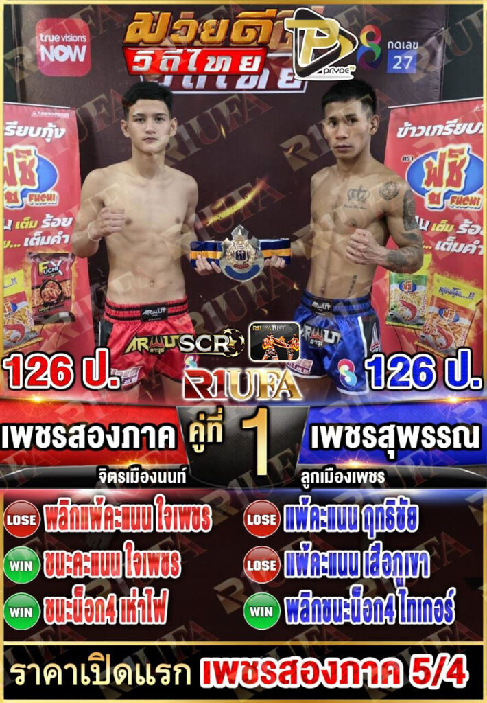 | คู่ชก | เพชรสองภาค จิตรเมืองนนท์ | เพชรสุพรรณ ลูกเมืองเพชร |