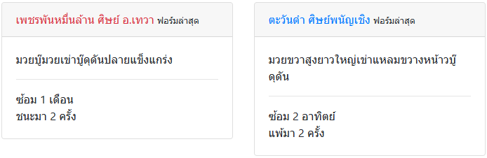 | ซ้อมที่ | ป.ขนส่งยิม จ.ระยอง | ศิษย์พนัญเชิง จ.มหาสารคาม |
