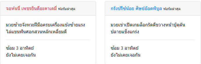| ชกล่าสุด | 1 เดือน 15 วัน | 1 เดือน 3 วัน |