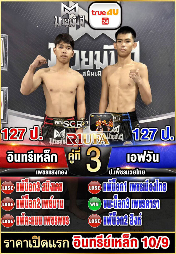 | คู่ชก | อินทรีย์เหล็ก เพชรแสงทอง | เอฟวัน ป.เพ็ชรมวยไทย |