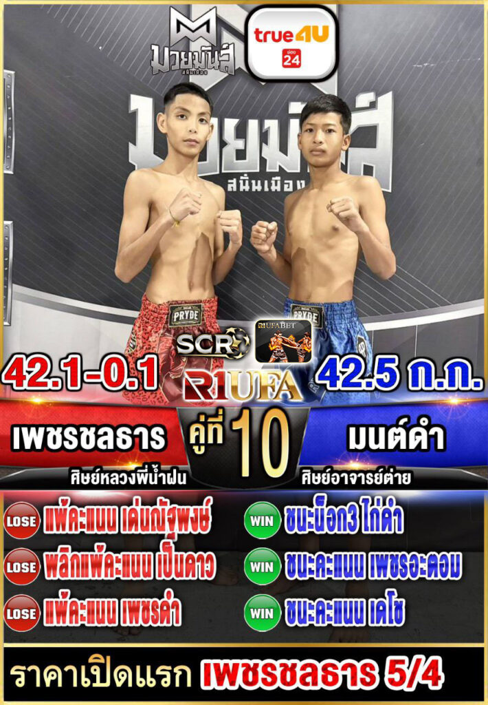 | คู่ชก | เพชรชลธาร ศิษย์หลวงพี่น้ำฝน | มนต์ดำ ศิษย์อาจารย์ต่าย |