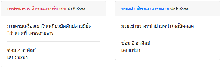 | ชกล่าสุด | 1 เดือน 11 วัน | 1 เดือน 18 วัน |