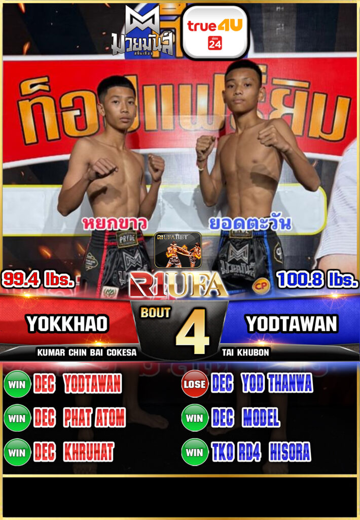 | คู่ชก | หยกขาว กุมารจีนBYโค๊กซ่า | ยอดตะวัน ใต้คู้บอน |