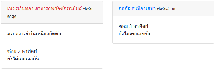 | ชกล่าสุด | 1 เดือน 11 วัน | 1 เดือน 17 วัน |