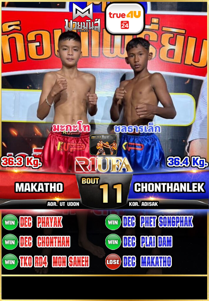 | คู่ชก | มะกะโท อ.อู๊ดอุดร | ชลธารเล็ก ก.อดิศักดิ์ |