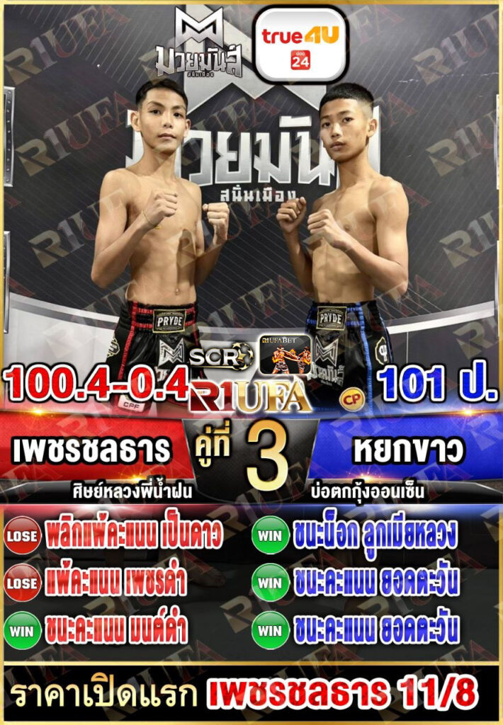 วิเคราะห์ผลมวย ศึกมวยมันส์สนั่นเมือง เพชรชลธาร ศิษย์หลวงพี่น้ำฝน vs หยกขาว บ่อตกกุ้งออนเซ็น 24/03/2569🥊