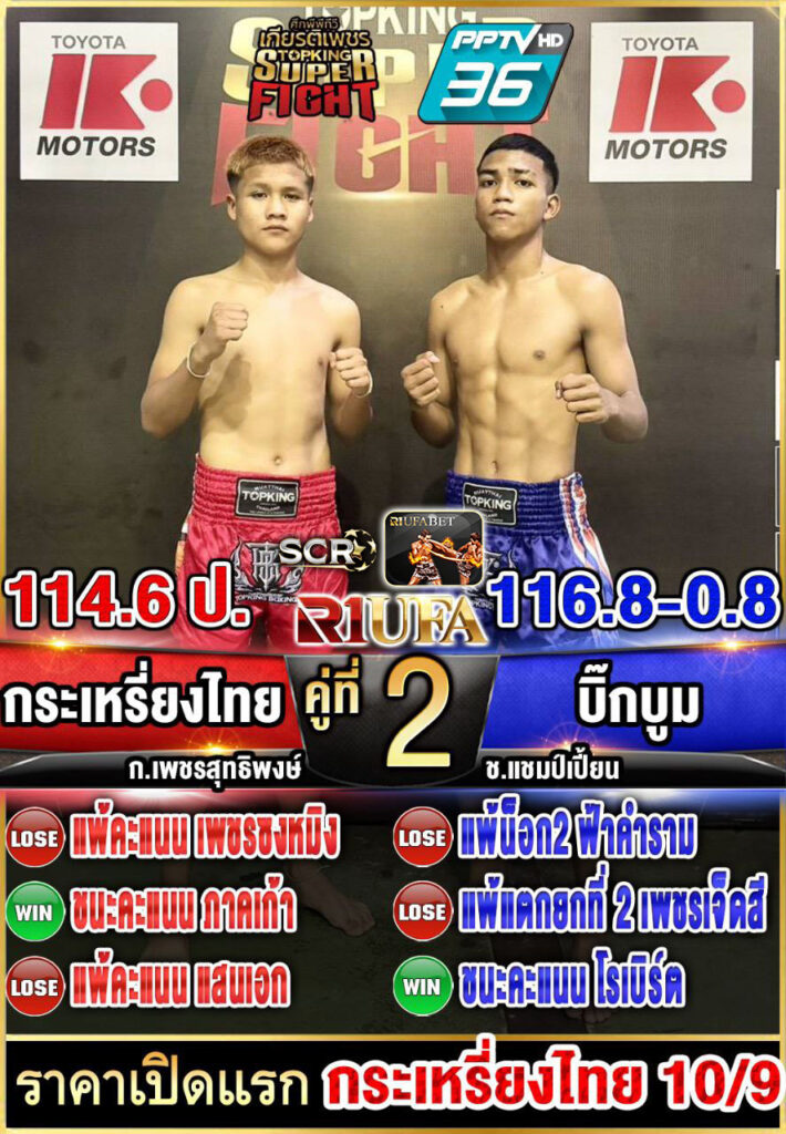 | คู่ชก | กระเหรี่ยงไทย ก.เพชรสิทธิพงษ์ | บิ๊กบูม เสี่ยต้อมเกาะล้าน |