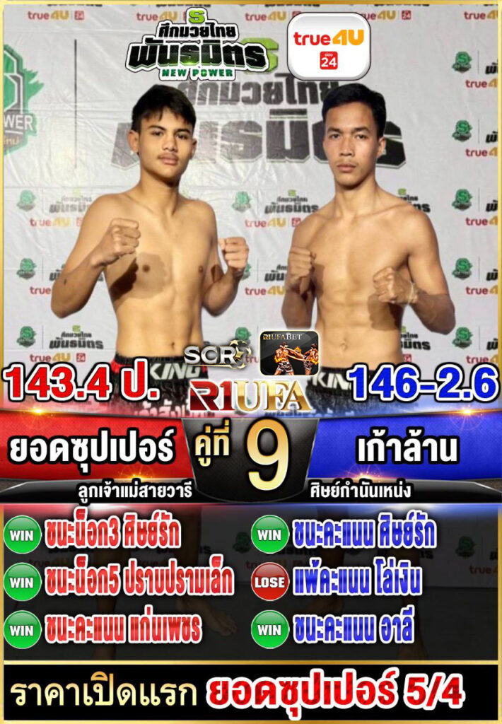 | คู่ชก | ยอดซุปเปอร์ ลูกเจ้าแม่สายวารี | เก้าล้าน ศิษย์กำนันเหน่ง |