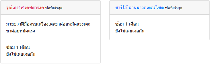 | ชกมาแล้ว | ≥ 30 ครั้ง | ≥ 30 ครั้ง |