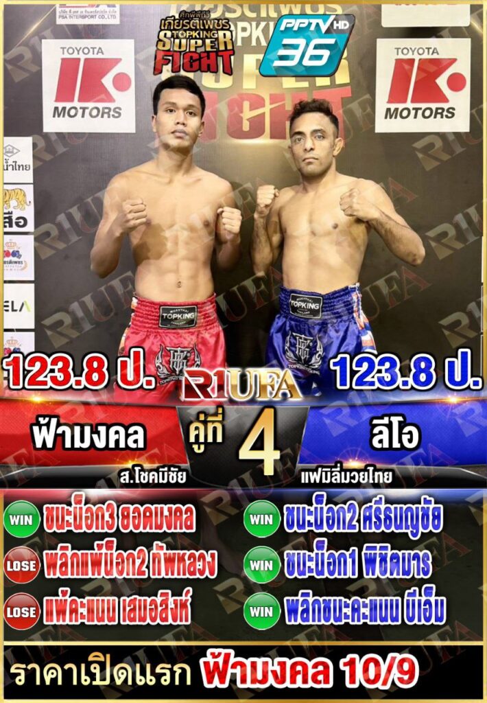 | คู่ชก | ฟ้ามงคล ส.โชคมีชัย | ลีโอ แฟมิลี่มวยไทย |