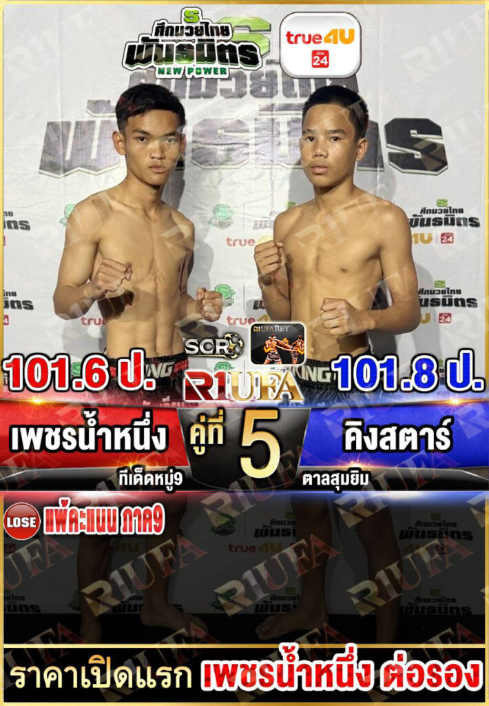 | คู่ชก | เพชรน้ำหนึ่ง ทีเด็ดหมู่9 | คิงส์สตาร์ ตาลสุมมวยไทยยิม |