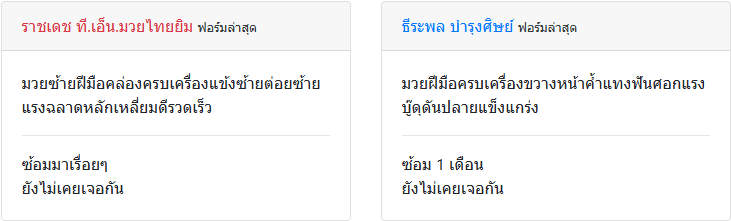 | ชกมาแล้ว | ≥ 100 ครั้ง | ≥ 100 ครั้ง |
