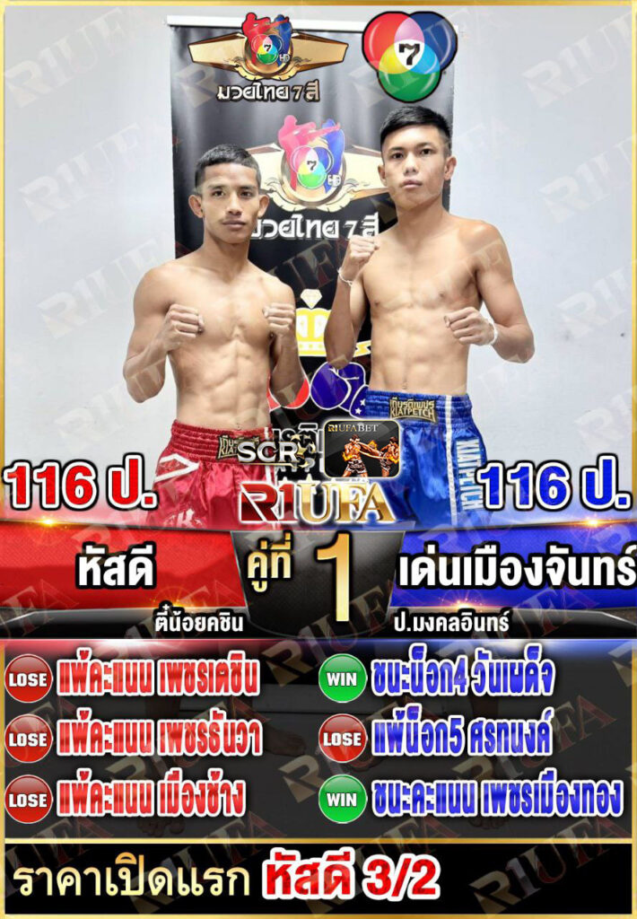 | คู่ชก | หัสดี ตี๋น้อยคะชิน | เด่นเมืองจันทร์ ป.มงคลอินทร์ |