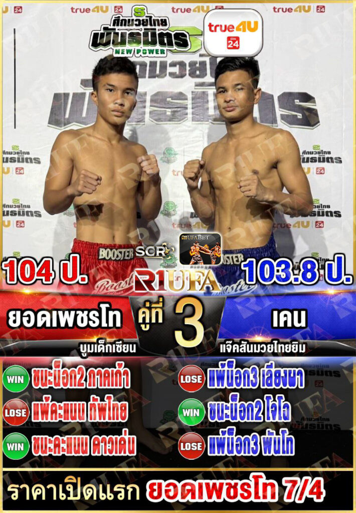 | คู่ชก | ยอดเพชรโท บูมเด็กเซียน | เคน แจ๊คสันมวยไทยยิม |