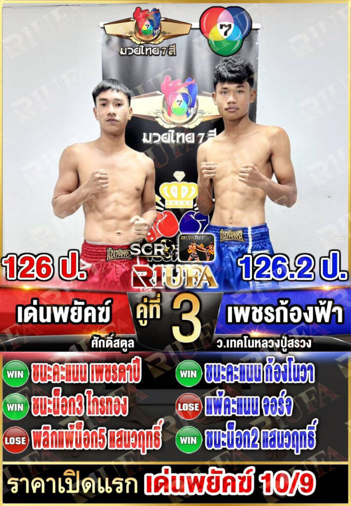 | คู่ชก | เด่นพยัคฆ์ ศักดิ์สตูล | เพชรก้องฟ้า ว.เทคโนหลวงปู่สรวง |