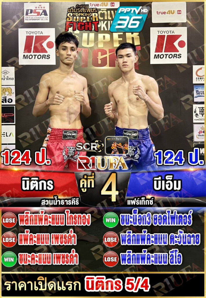 | คู่ชก | นิติกร สวนน้ำธารคีรี | บีเอ็ม แฟร์เท็กซ์ |