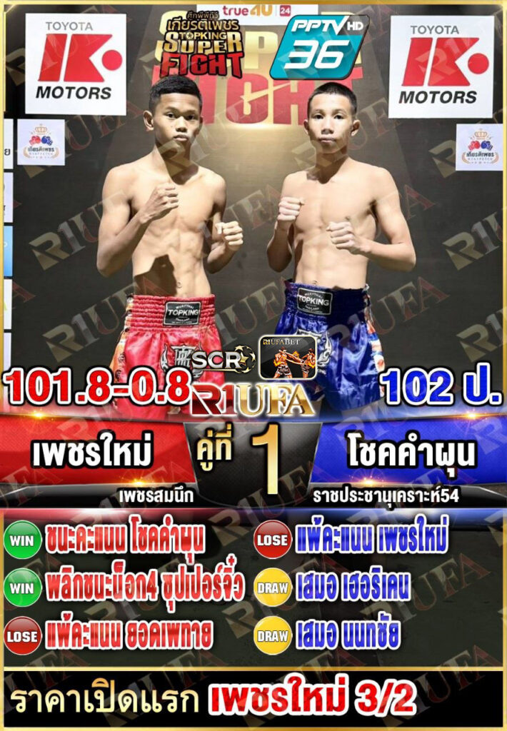 | คู่ชก | เพชรใหม่ เพชรสมนึก | โชคคำผุน โรงเรียนประชานุเคราะห์54 |
