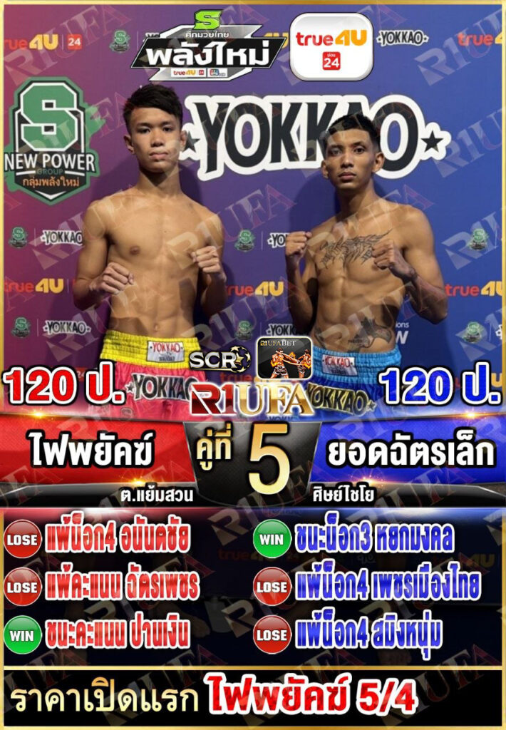 | คู่ชก | ไฟพยัคฆ์ ต.แย้มสวน | ยอดฉัตรเล็ก ศิษย์ไชโย |