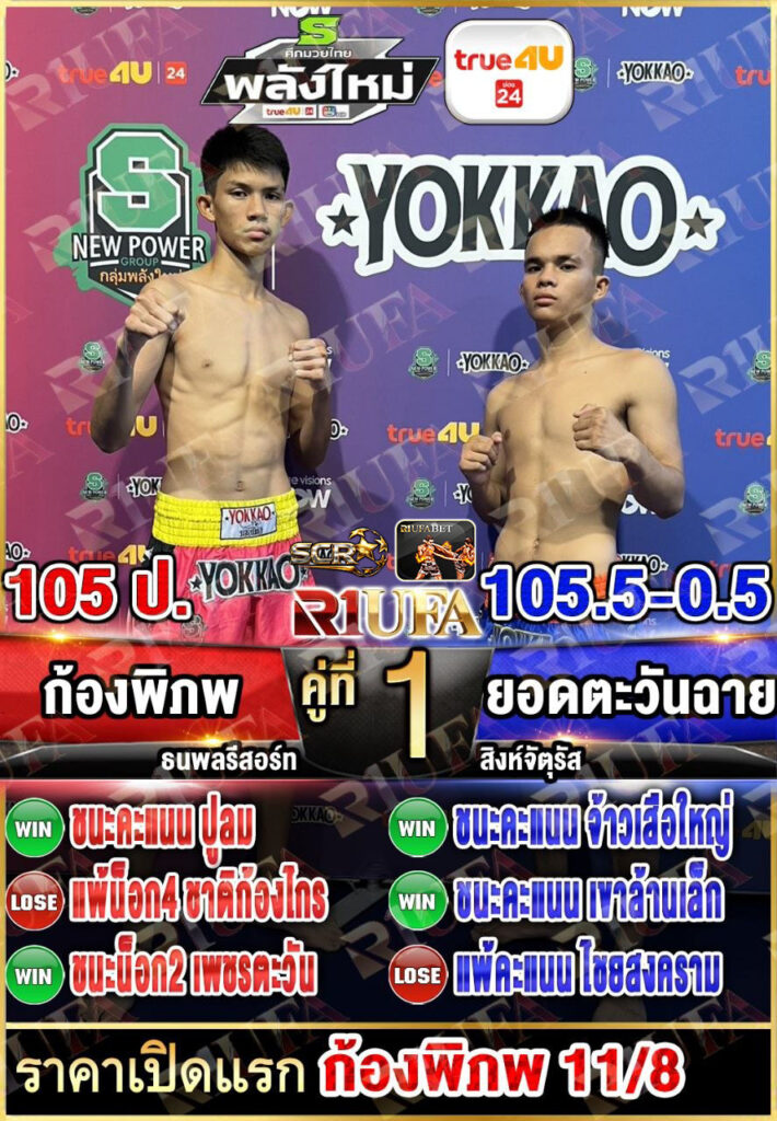 | คู่ชก | ก้องพิภพ ธนพลรีสอร์ท | ยอดตะวันฉาย สิงห์จัตุรัส |