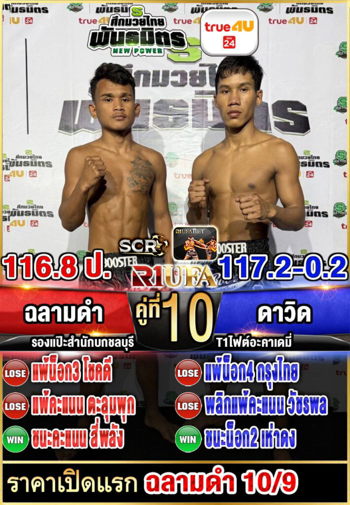 | คู่ชก | ฉลามดำ รองแป๊ะสำนักบกชลบุรี | ดาวิด T1ไฟต์อะคาเดมี่ |