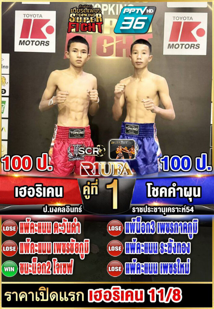 | คู่ชก | เฮอริเคน ป.มงคลอินทร์ | โชคคำผุน โรงเรียนประชานุเคราะห์54 |