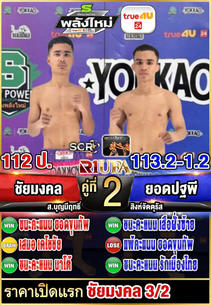 | คู่ชก | ชัยมงคล ส.บุญมีฤทธิ์ | ยอดปฐพี สิงห์จัตุรัส |
