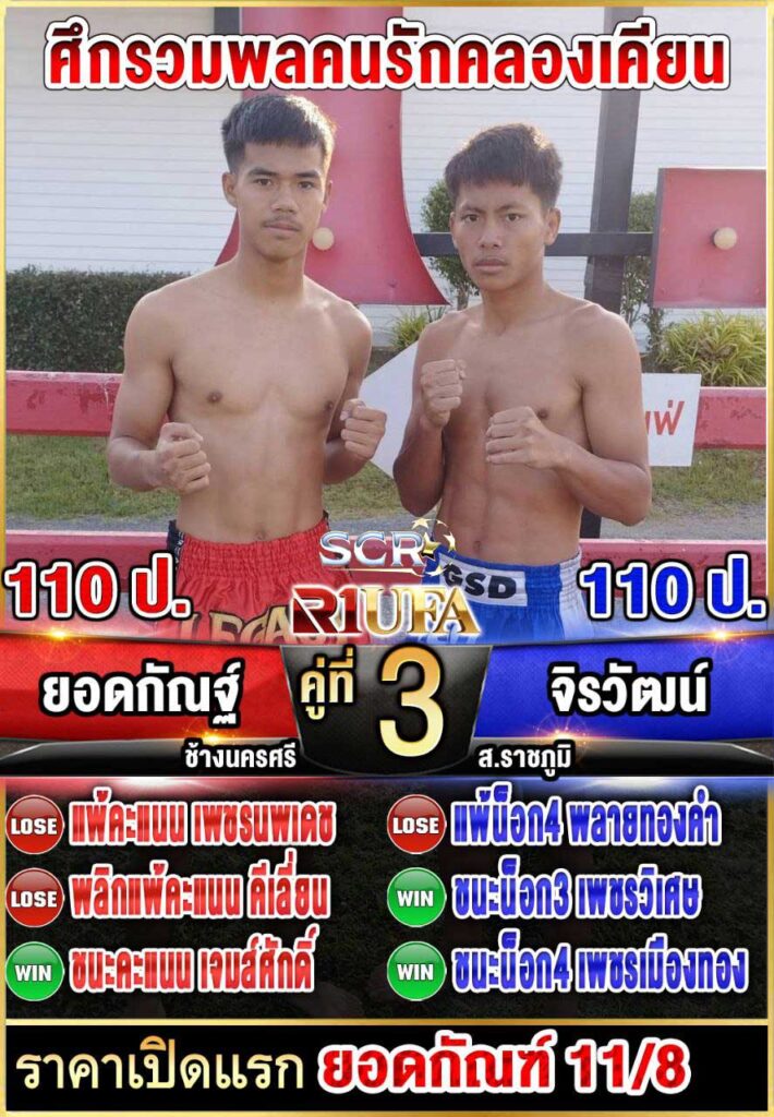 | คู่ชก | ยอดกัณฑ์ ช้างนครศรี | จิรวัฒน์ ส.ราชภูมิ |